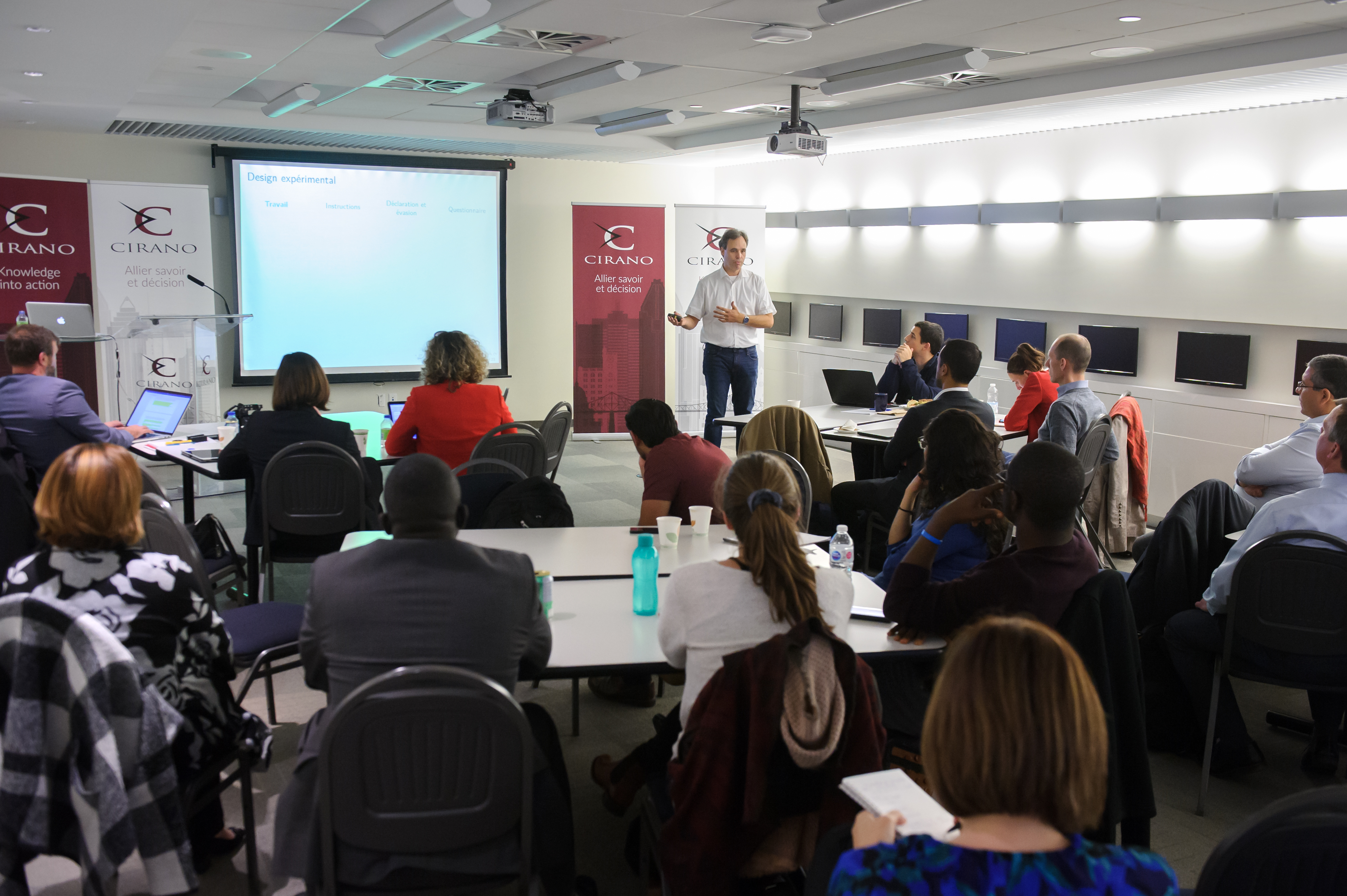 Une série de trois présentations de chercheurs du CIRANO a illustré les apports de l'économie expérimentale dans différents secteurs incluant la gestion de portefeuille, l'évasion fiscale et la discrimination à l'embauche.