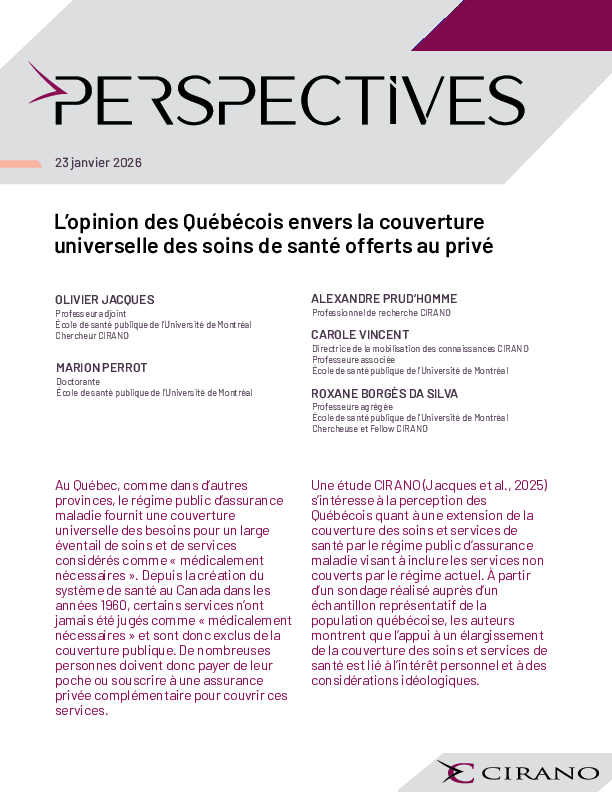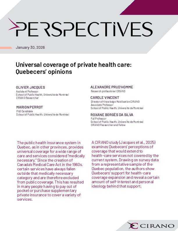 Universal coverage of private health care: Quebecers’ opinions